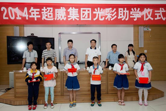 多年来,超威集团持续开展“光彩助学”活动,为企业所在地浙江省长兴县的贫困学子们提供助学基金。据不完全统计,超威集团先后投入3000多万元用于光彩助学等慈善公益事业,让这些因各种原因不能上学的孩子们继续完成学业。连续三年收到助学金的困难学子毛伟超说:“在超威的帮助下,我已经成为山东大学大二的学生。千言万语汇成两个字——感谢!希望受助的弟弟妹妹们都能够怀着感恩的心努力学习,将来学有所成的同时,也要继承这样的优良品德,回报社会。”
