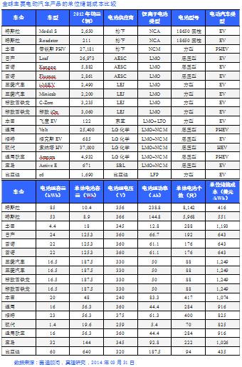 从上表可以看到,不管电动汽车产品形态是PHEV还是EV,车用锂离子电池是大电池还是小电池,是用什么材料,是什么形状,起决定性作用的还是电池组的单位储能成本。结合上期月度报告各款电动汽车产品的2013年销量来看,单位储能成本超过1,000美元/kWh的电动汽车产品,除了丰田普锐斯PHEV之外,其他销量均很一般。普锐斯PHEV 2012年的高销量主要得益于丰田混合动力技术以及普锐斯HEV在消费者心目中的良好形象,然而,即便如此,普锐斯PHEV 2013年也没有逃脱销量下滑的境况。