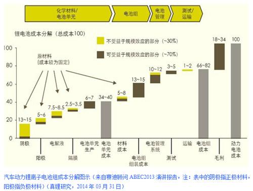 总的来看,吴辉认为,汽车动力锂离子电池组的各个构成成本中,共有约70%的成本是可以通过扩大生产规模来降低成本的。这也是美国特斯拉(Tesla)为了大众型EV的推出而提出要建造50亿美元的超级电池工厂“Gigafactory”的主要原因所在。