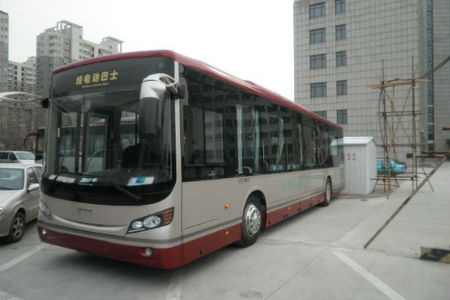 在武清汽车产业园天津比亚迪汽车有限公司厂区内,公交车司机崔志海师傅正在尝试着操作刚刚下线的“金马”牌纯电动公交车。即使在时速40公里的状态下,坐在十多米宽,近三米长的车厢里,也听不到一点机器运行发出的噪音。和几个月前投入使用的无障碍公交车一样,新能源公交车车身具有向右侧倾斜的侧跪功能,后门处还设计了翻转坡道及轮椅区。试车结束,崔师傅对新车赞不绝口,“这个是电动的,节能减排。也不用挂档了,还挺轻松。一键启动,无障碍上车啊,人性化,速度也行,满载爬坡跑40多,平时能跑60到70吧……”。