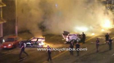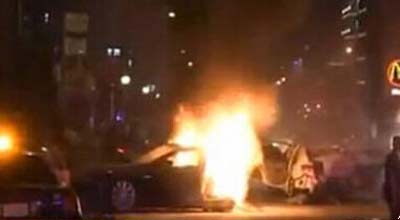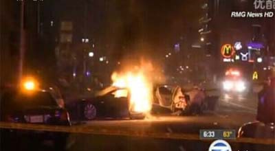 这辆被盗的特斯拉在追逐中撞上两辆轿车,特斯拉的司机和另一辆本田轿车中的五人在碰撞中受伤。特斯拉的爆炸起火,一些人开始误以为是美国独立日的庆祝。“我们本来以为是放鞭炮,大家都以为是放鞭炮,而不是爆炸。”