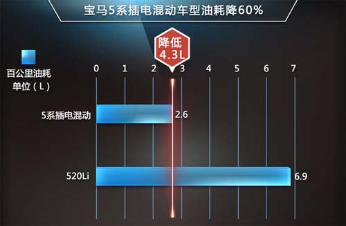 动力方面,宝马5系插电式混动车型将搭载一套全新的动力系统,由一台拥有TwinPower技术的涡轮增压引擎+电动机组成。其中涡轮增压发动机最大功率 157kW,电动机的最大功率68kW。得益于插电混动系统的应用,该车百公里综合油耗仅为2.6L,相比520Li的6.9L/100km,油耗节约 60%。