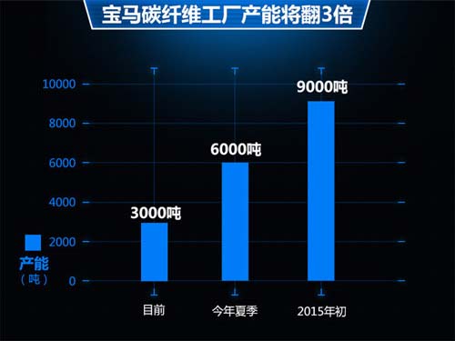 宝马于2014年提升了美国碳纤维工厂的产能高达三倍,根据宝马集团战略,Diess博士表示碳纤维材料有望使用在更多产品上,并且中国会与全球保持同步技术。