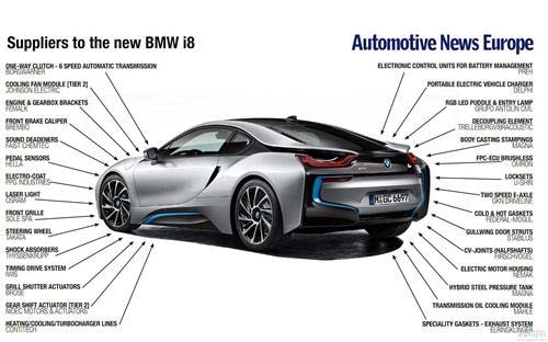 近日,记者获悉,宝马i8插电式混合动力跑车的主要零部件供应商名单,均胜电子(600699)控股公司德国普瑞成为i8电池管理电控单元供应商。