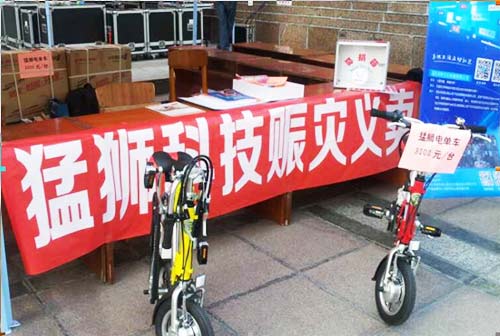 在活动中,猛狮科技将正在热销的一秒钟折叠式电动自行车作为义卖商品,共计筹得3万元善款,全部捐助给鲁甸灾区人民。