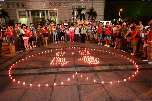 参与义演义卖的企业和热心群众为鲁甸灾区祈福