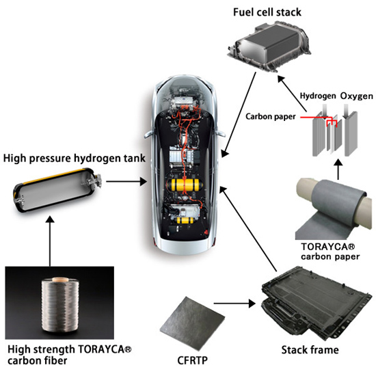 东丽近日宣布,其碳纤维材料已应用于丰田汽车公司今年12月将推出的燃料电池汽车MIRAI上。