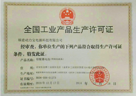 近日,广东猛狮电源科技股份有限公司(以下简称猛狮科技)全资子公司福建动力宝电源科技有限公司(以下简称福建动力宝)取得了国家质量监督检验检疫总局颁发的《全国工业产品生产许可证》,正式获准生产铅电池产品。