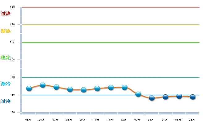 图1 :2013.5—2014.06电池行业主营业务收入景气指数变化态势