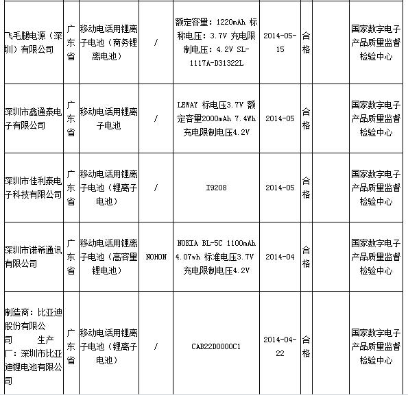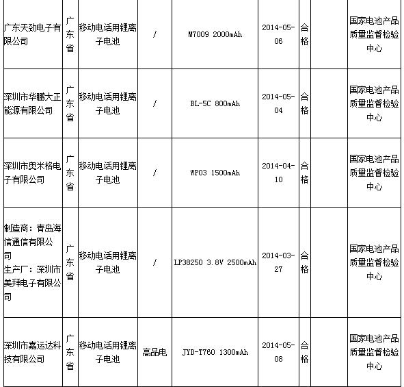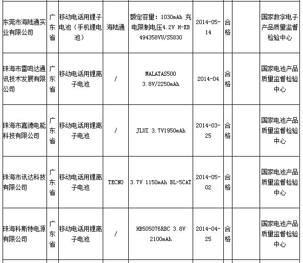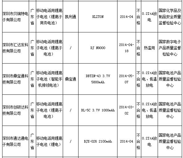 国家质检总局17日公布的2014年第2季度移动电话用锂离子电池产品质量国家监督抽查结果显示,不合格产品检出率为10.7%,不合格产品检出率同比上次抽查高出了2.1个百分点。