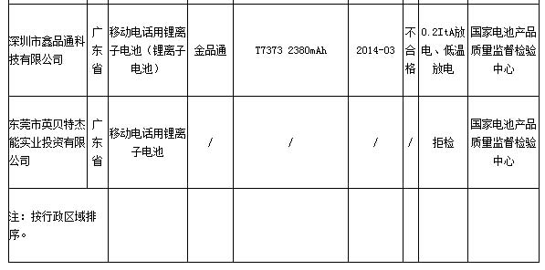 另外,东莞市英贝特杰能实业投资有限公司在本次抽查中拒检。