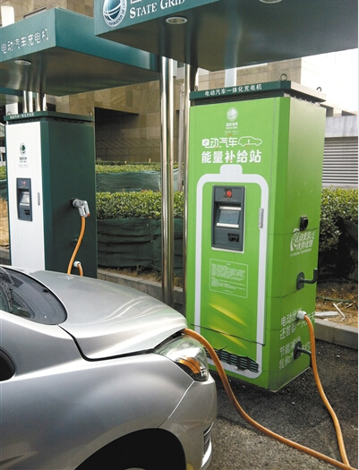 位于北京清华科技园中的充电网点。目前,即便是在一线大城市,电动汽车充电设施的建设覆盖仍不理想。