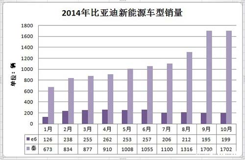 11月10日,比亚迪官方公布了新能源汽车的销量情况。数据显示,比亚迪秦10月销售1702辆,1-10月累计11175辆。e6电动车销售199辆,1-10月累计2203辆。今年1-10比亚迪新能源乘用车累计销量达13378辆,稳居国内新能源汽车销量冠军宝座。