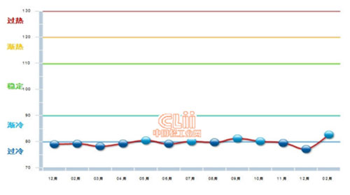 根据此前中国轻工业网发布的“中轻电池景气指数”显示,2014年12月前,我国电池行业始终在“过冷”与“渐冷”区间内徘徊;进入2015年,电池行业发展出现向好态势,“中轻电池景气指数”从2014年12月的77.12上涨到2015年2月的82.67。