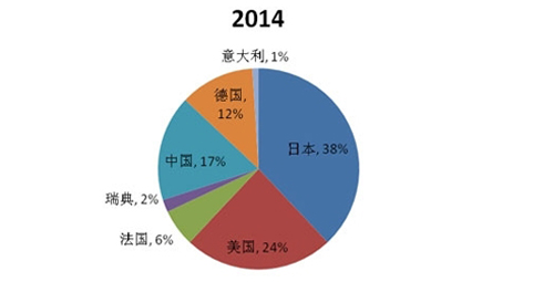 张进华在演讲中介绍,从新能源汽车的生产国别来说,在过去两年,日本是最大的生产国,2013年和2014年市场份额占到47%和38%。美国连续两年是第二大的生产国。中国生产商的份额近两年从4%增长到17%,2014年已经超过法国成为第三大电动汽车生产国。