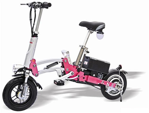 该款电动车采用航空镁合金材料,借助时下流行的高效节能、低碳环保的理念,集自行车、电动车、助力车三者为一体,一车多用,符合电动车新国标要求。更关键的是,这辆车整车重量不到20公斤,整车体积仅0.15立方米,占地面积仅0.18平方米,通过内置在车座下的自动按钮,一秒钟就能轻松折叠,折叠后可轻松提起,放进汽车后备箱。现场演示,一部普通两厢轿车的后备箱,可以放下三辆“艾妮儿”电动车。