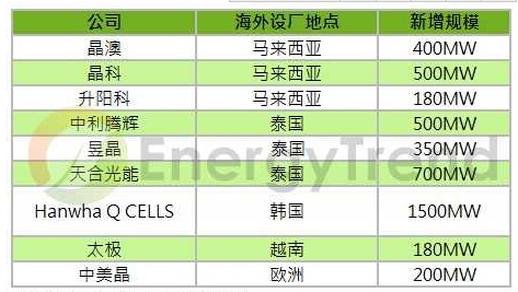 根据EnergyTrend的调查研究,许多厂商今年上半年已纷纷宣布将在东南亚或韩国等地新设产能,在不计印度新增产能的情况下,2015年年底前,仅此亚太区域的电池产能估计将达4.5GW,只要年底前能顺利开出产能,就足够供应美国所需。因此,在这些产能开出后,海外电池的供需可望达到较平衡的状态,使得中国、台湾生产的电池价格面临下跌压力。