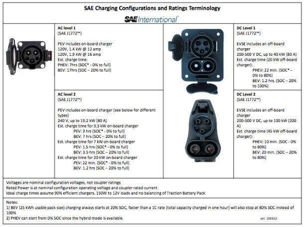 SAEJ1772只是一个总称,它包括4个细分标准,有3种不同的充电接口造型。其中,交流充电标准与直流充电标准,均分别区分Level1与Level2两种规格,这两种规格主要是输出功率的不同。