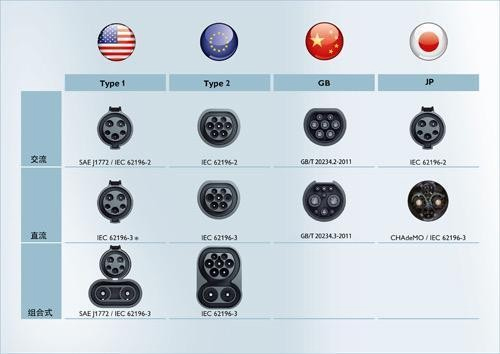 目前全球范围内以接口为准,充电标准大致分为三类:一类是美标,一类是欧标,一类是国标。根据充电技术区分,无非就是直流充电(DC)标准与交流充电(AC)标准。