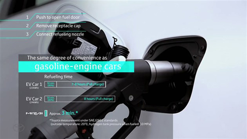 奇怪的是,丰田作为汽车界的大腕,内部显然不会所有人都不懂这么简单的道理。考虑目前丰田的种种选择性宣传,更贴近事实的解释可能是他们自己是明白的,但却希望大家最好不明白。于是他们就一遍又一遍地强调油进水出,强调燃料电池车可以快速加满氢气燃料。