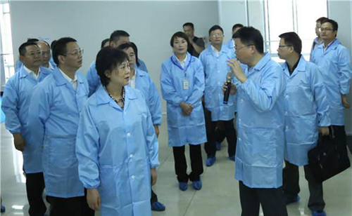 邱则有向湖南省委常委黄兰香介绍生产工艺流程