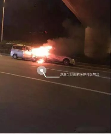 面包车是从后面追尾比亚迪电动出租车,并将车头卡在前方出租车尾部。约5分钟后,后方面包车的车头出现明火,碰撞造成汽油车油管破裂,汽油喷射到地面并燃烧,引燃了前方出租车的尾部,造成两车部分烧毁,所幸无人员伤亡。由于比亚迪电动出租车的电池包在车身下面,没有被燃烧到,电池包保存完整。事故发生后,据现场交警初步判断,追尾的面包车负全责。