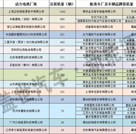 山东威能环保电源公司排在第四名,主要为湖南江南汽车制造公司生产的众泰牌电动车配套,当月装机量为3177辆。
