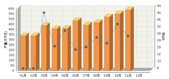 根据国家统计局公布数据,2015年1~11月,全国太阳能电池行业累计完成产量同比增长23.41%。其中:11月份完成产量同比增长28.09%。2015年全国太阳能电池行业月度产量及同比如上图所示。