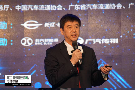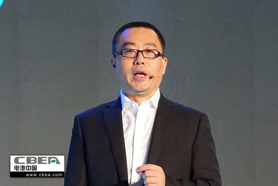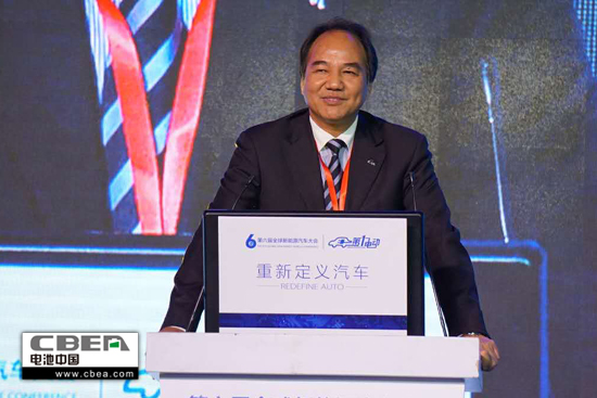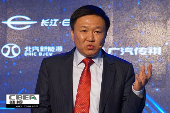 图为北汽新能源汽车有限公司总经理郑刚发表主题演讲