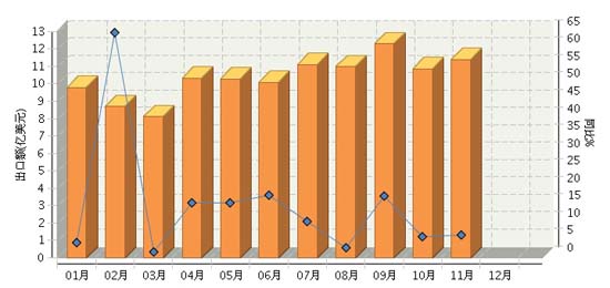 根据海关总署公布数据, 2015年1~11月,全国电池行业累计完成出口额同比增长12.61%。其中:11月份完成出口额同比增长6.6%。2015年全国电池行业月度出口额及同比如上图所示。