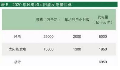 我们假设2020年中国能够实现风电和太阳能发展目标,如表5所示,那么二者加起来的发电量可以达到6950亿千瓦时,比2014年的水平增加了280%。假设2020年的补贴额在2014年570亿元的水平上也增加280%,将达到2161亿元。