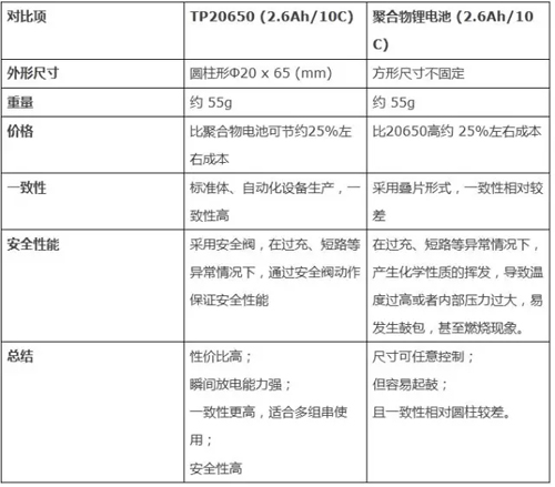 1.2 相同容量和放电倍率的情况下,和聚合物电池相比,如下表