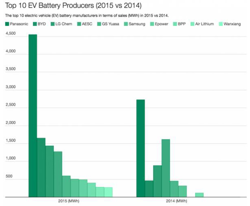 三星排在第六位,2015年销量504兆瓦时,其合作伙伴包括宝马与菲亚特。排在第七位至第十位的分别是Epower、北京普莱德、中航锂以及万向,他们都是来自中国的企业。
